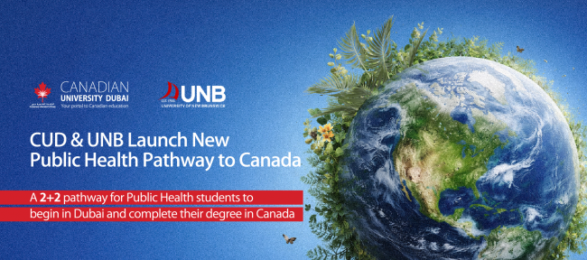 Under the newly established 2+2 Bachelor of Health Pathway, students enrolled in CUD’s Bachelor of Science in Public Health will have the opportunity to complete their first two years in Dubai before transferring to the University of New Brunswick’s School of Integrated Health to complete their degree in Canada.