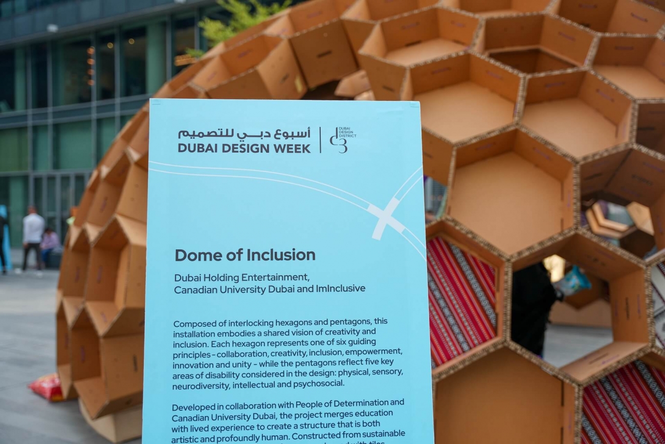 Reflecting on the project’s educational value, Massimo Imparato, Dean of the School of Architecture and Interior Design at Canadian University Dubai, commented, “Dubai Design Week is a unique opportunity to connect on a global scale and it is a significant platform for students to establish and accelerate their networks with industry practitioners. Through the Dome of Inclusion installation, we are delighted to partner once again with Dubai Holding Entertainment and ImInclusive to recognize the contribution of People of Determination to the UAE’s creativity community.”