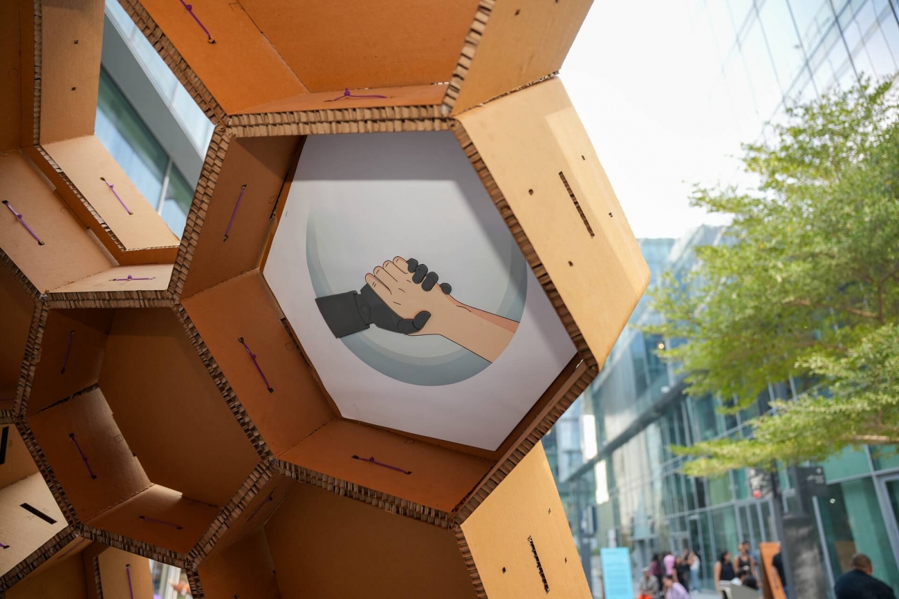 Created collaboratively by CUD’s School of Architecture and Interior Design in partnership with ImInclusive, the project merges academic knowledge with lived experience to produce a work that is both artistic and deeply human. It is constructed from sustainable cardboard and features tiles showcasing original artwork by People of Determination, turning design into a platform for accessibility and shared expression that celebrates creativity without barriers. The installation aims to deliver a meaningful and inclusive showcase that celebrates the talent, scale, and beauty of the disabled community through innovative design.
