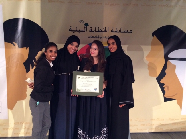 December 10th, 2014: A team of students from Canadian University Dubai (CUD) have taken the second runners up position at the 14th annual Emirates Environmental Group (EEG) public speaking competition.