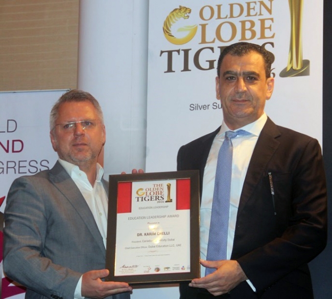 April 17th, 2016: President and Vice Chancellor of Canadian University Dubai, Pr. Karim Chelli, has received the Asian Confederation of Business Golden Globe Tiger Award for Education Leadership, at a ceremony held recently in Kuala Lumpur, Malaysia.