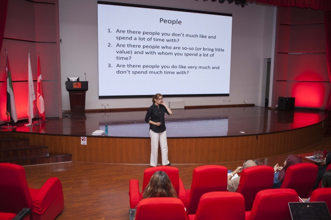 October 16 2017 -  Red Theater, CUD: Students and Faculty attended a seminar conducted by Dr. Louise Lambert, Associate Professor in which she explored strategies on how to invest in your future happiness.