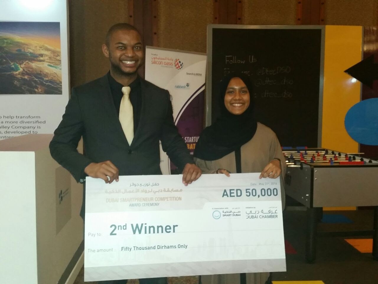 June 12th, 2016: The Canadian University Dubai (CUD) students behind Efhamni, a new mobile app to teach Emirati sign language, have secured a second enterprise challenge success, winning AED 50,000 at the 2016 Dubai Chamber Smartpreneur Competition.