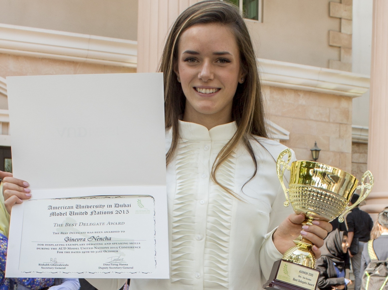 November 5th, 2015: International Business student, Ginevra Nencha, has taken the title of Best Delegate at the UAE students’ Model United Nations (MUN) conference held recently in Dubai.