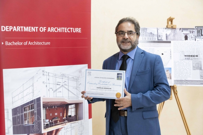 September 28, 2018: Dr. Hammoud Dekkiche, Head of Department of Architecture at Canadian University Dubai, and long-time contributor to the peer-review based scientific “Journal of Building Engineering,” received a Certificate of Appreciation for his outstanding contribution to Peer Reviews.