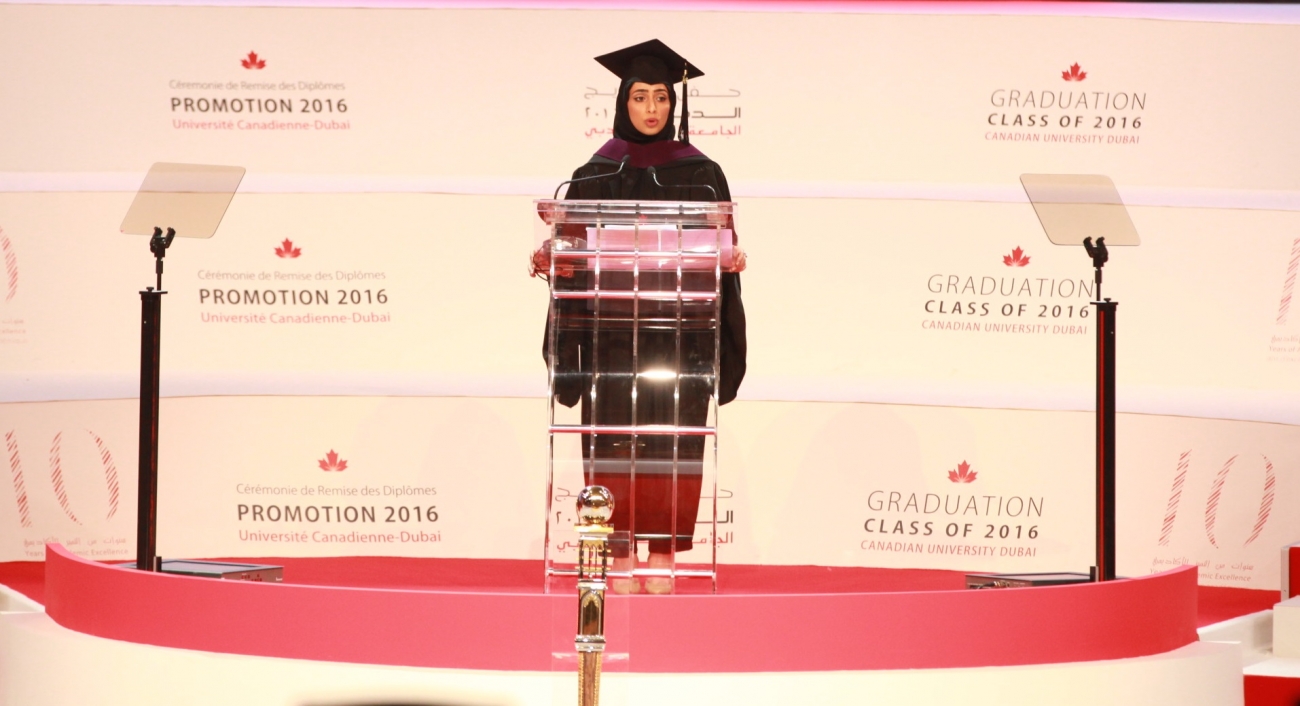 Speaking on behalf of the graduates at the ceremony, Bachelor of Architecture major, Reem Sultan Saeed Al Mansoori, said, “I must express what a great honour it is for us to become members of the Canadian University Dubai class of 2016. Not only do we celebrate our personal journeys to success, but we also share in the pride of the entire university community, as we mark the tenth anniversary of this great institution.”