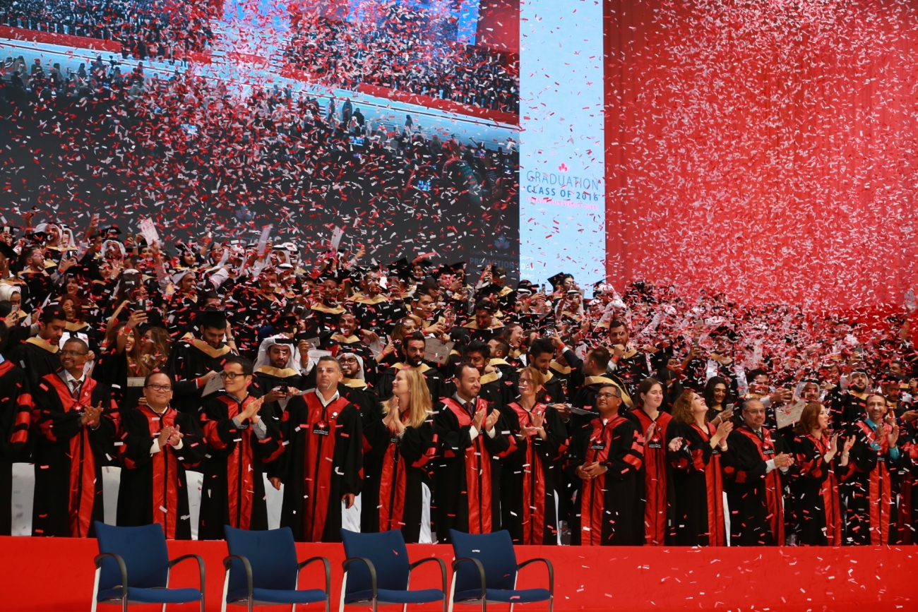 University Chancellor, Mr. Buti Saeed Al Ghandi; Vice-Chancellor and President, Dr. Karim Chelli; Canadian Ambassador to the UAE, His Excellency Dr. Arif Lalani; and the CUD Board of Trustees, also presided over the graduation ceremony, which this year saw the award of 466 degrees.