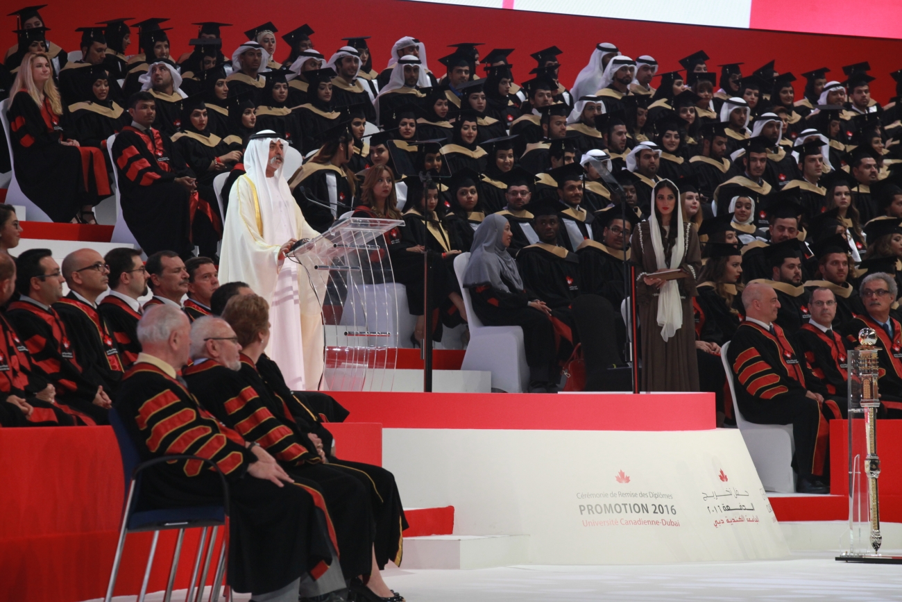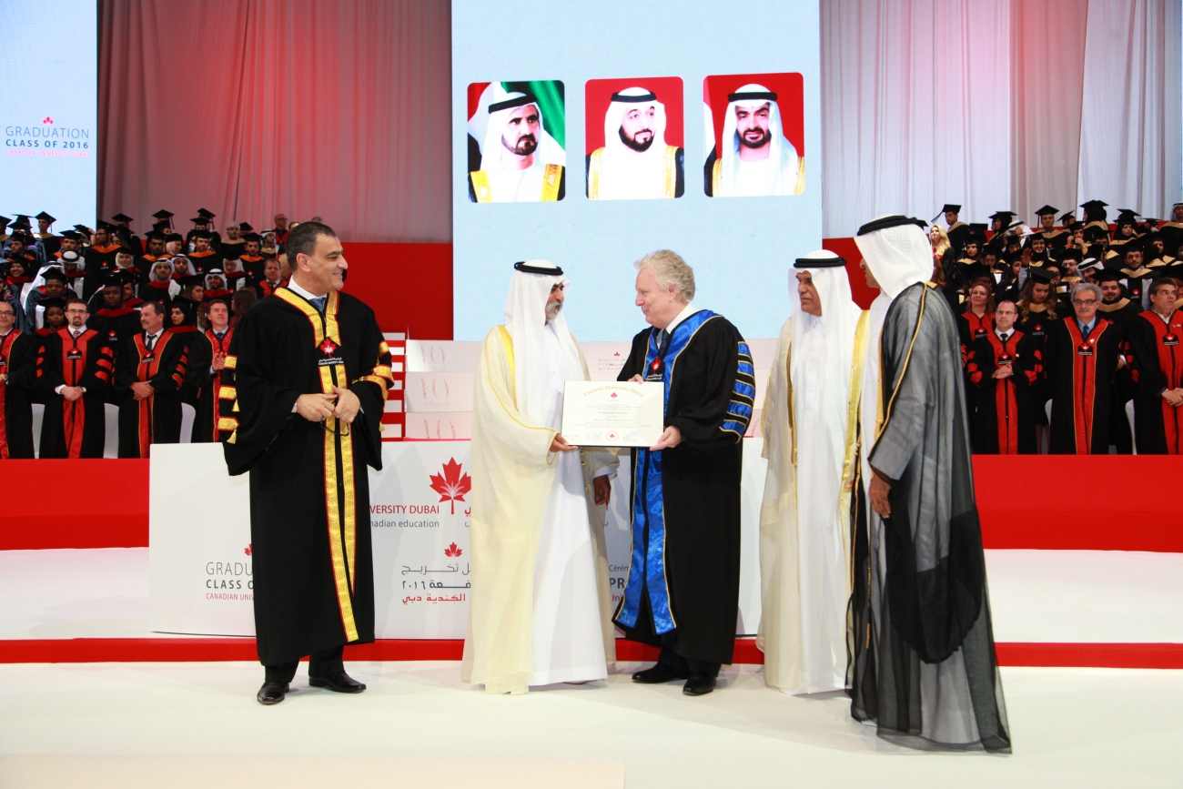 April 28th, 2016: His Excellency Sheikh Nahyan Bin Mubarak Al Nahyan, Minister of Culture and Knowledge Development, has presided over the 6th convocation of Canadian University Dubai (CUD) in a ceremony that commemorated the 10th anniversary of the University’s establishment in the UAE.