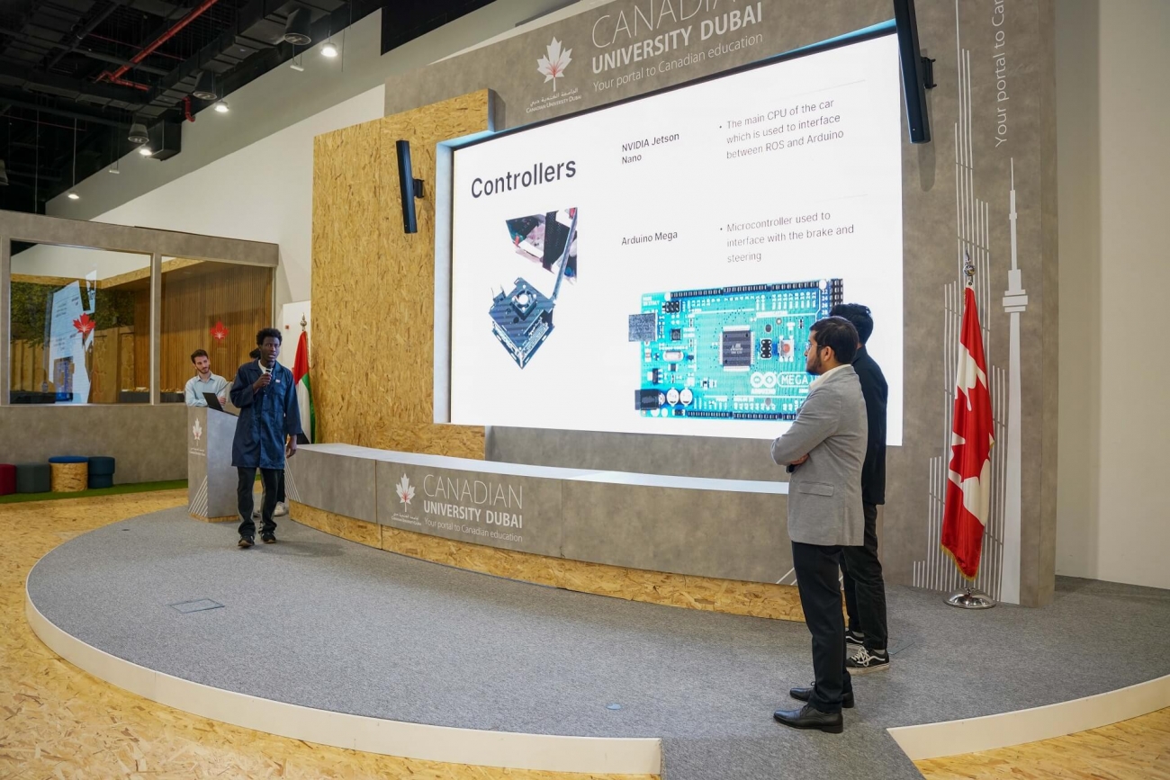 June 16th, 2023, Dubai (UAE): The Engineering graduation projects were showcased at an event organized by the School of Engineering, Applied Science and Technology; at the Canadian University Dubai (CUD). As part of the graduation program requirement, each group comprised of a multi-disciplinary team that presented their respective projects. Five groups of students collaborated on the same project, with each team being responsible for an aspect to manufacture an urban car that is powered by solar energy and operates independently. The design, assembly, and manufacturing of this car project took the students more than 12 months of close collaboration and hard work to come to life. The project is an example of an exceptional capstone project showcasing the future of sustainability in urban transportation.