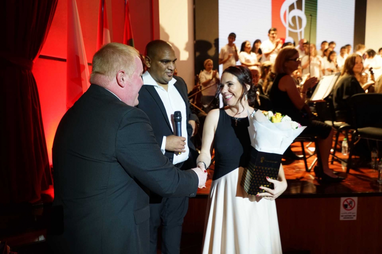 The evening saw the U.A.E Philharmonic Orchestra led by Ms. Aveline Bouqet and The Ensenble Choir led by Rivaan Mager join musical talent and passion in an unparalleled performance. The Choir comprised of students with special needs from several special education centers from across the U.A.E sang to an audience of over 150 including parents, teachers, students, friends, and family. The Orchestra and Choir showcased Bethhoven’s Symphony No 5, as well as Gershwin and other notable classical musicians and both the Orchestra and Choir were rewarded with several standing ovations throughout the evening for their incredible performances.