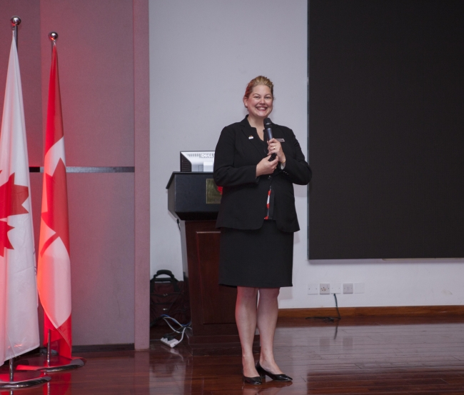 October 15 Red Theater, CUD: Ms. Jennifer Waldshütz, International Undergraduate Recruiter from the University of New Brunswick, delivered a presentation to students interested in completing their studies in Canada.